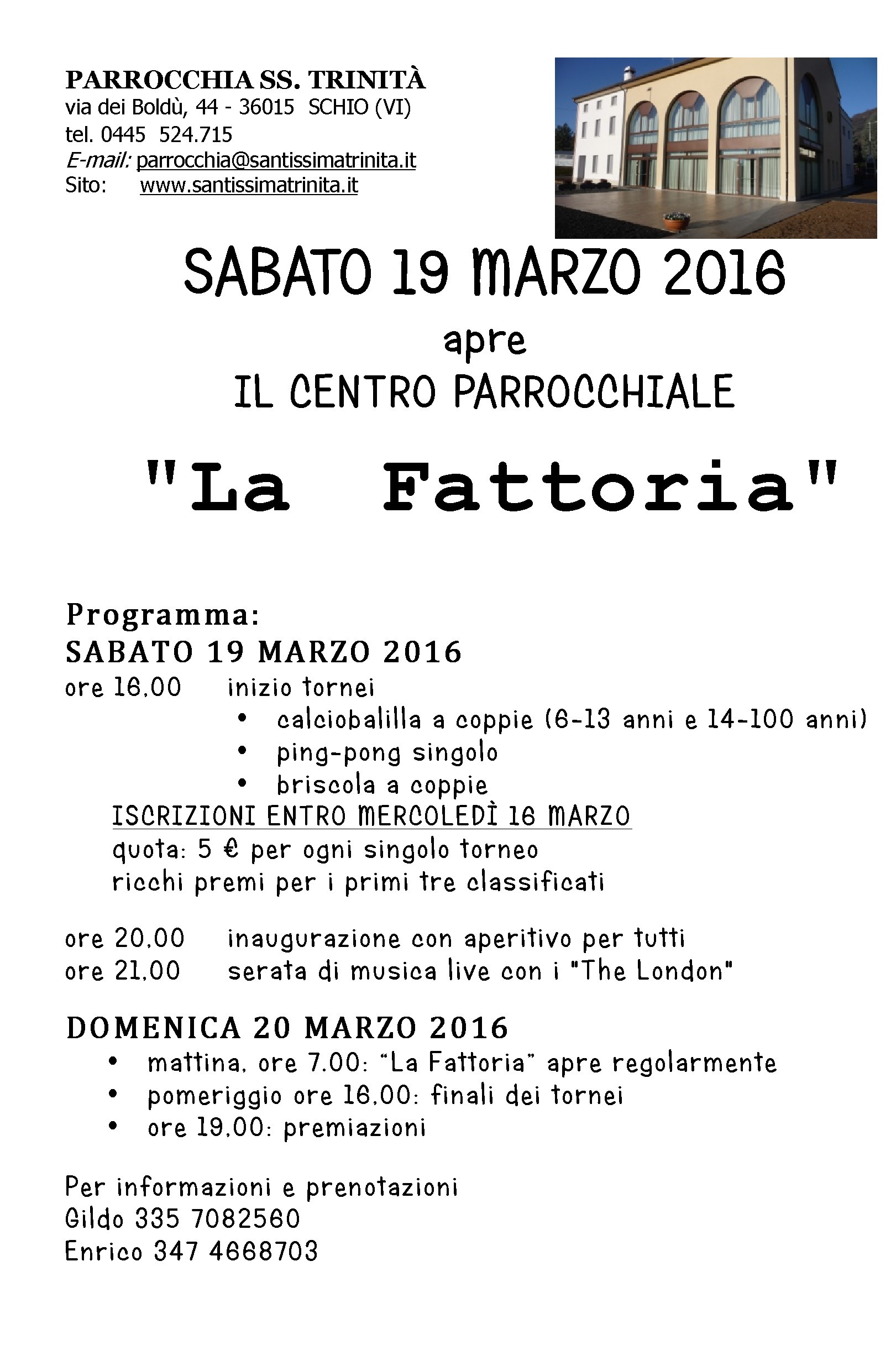 Uffici parrocchiali e orari